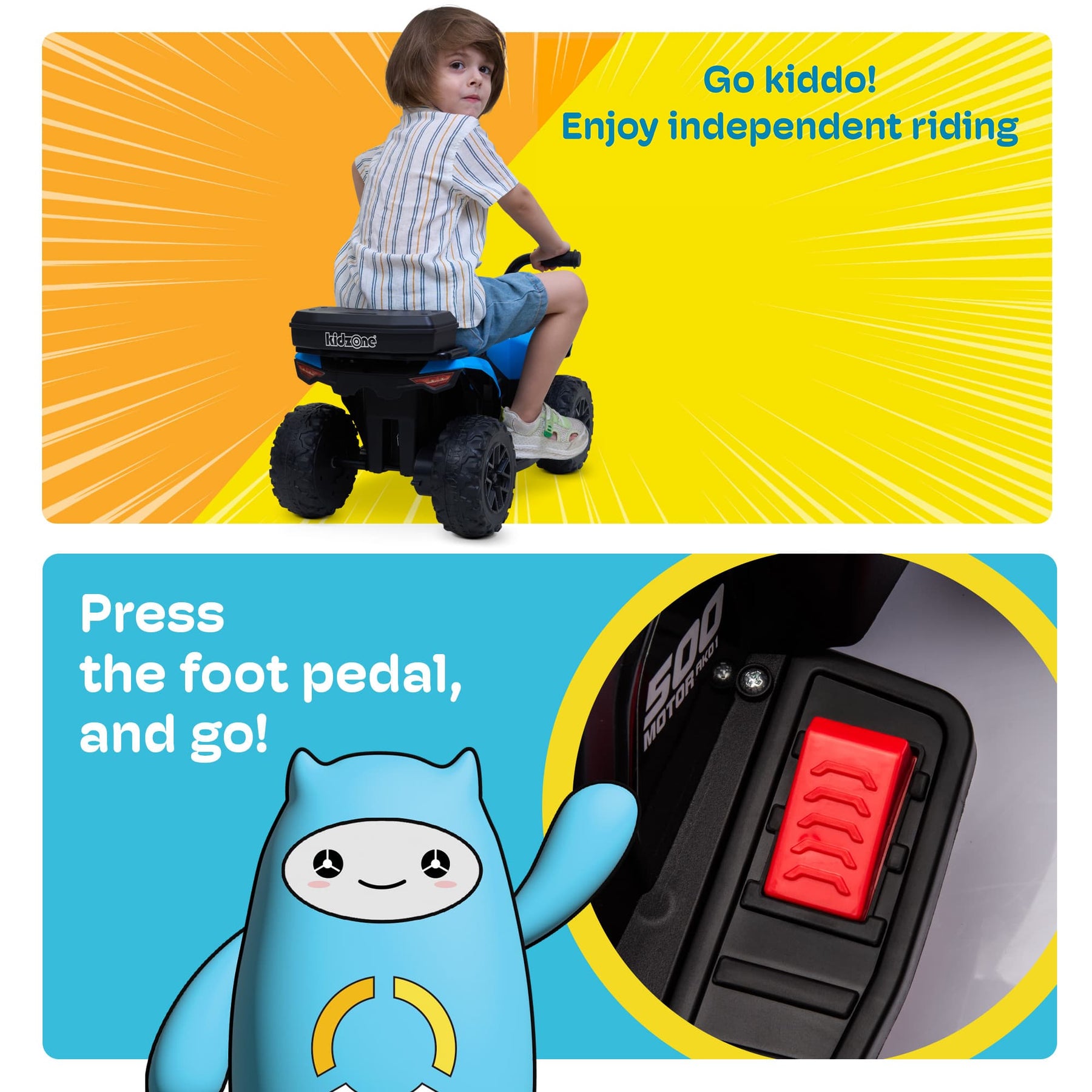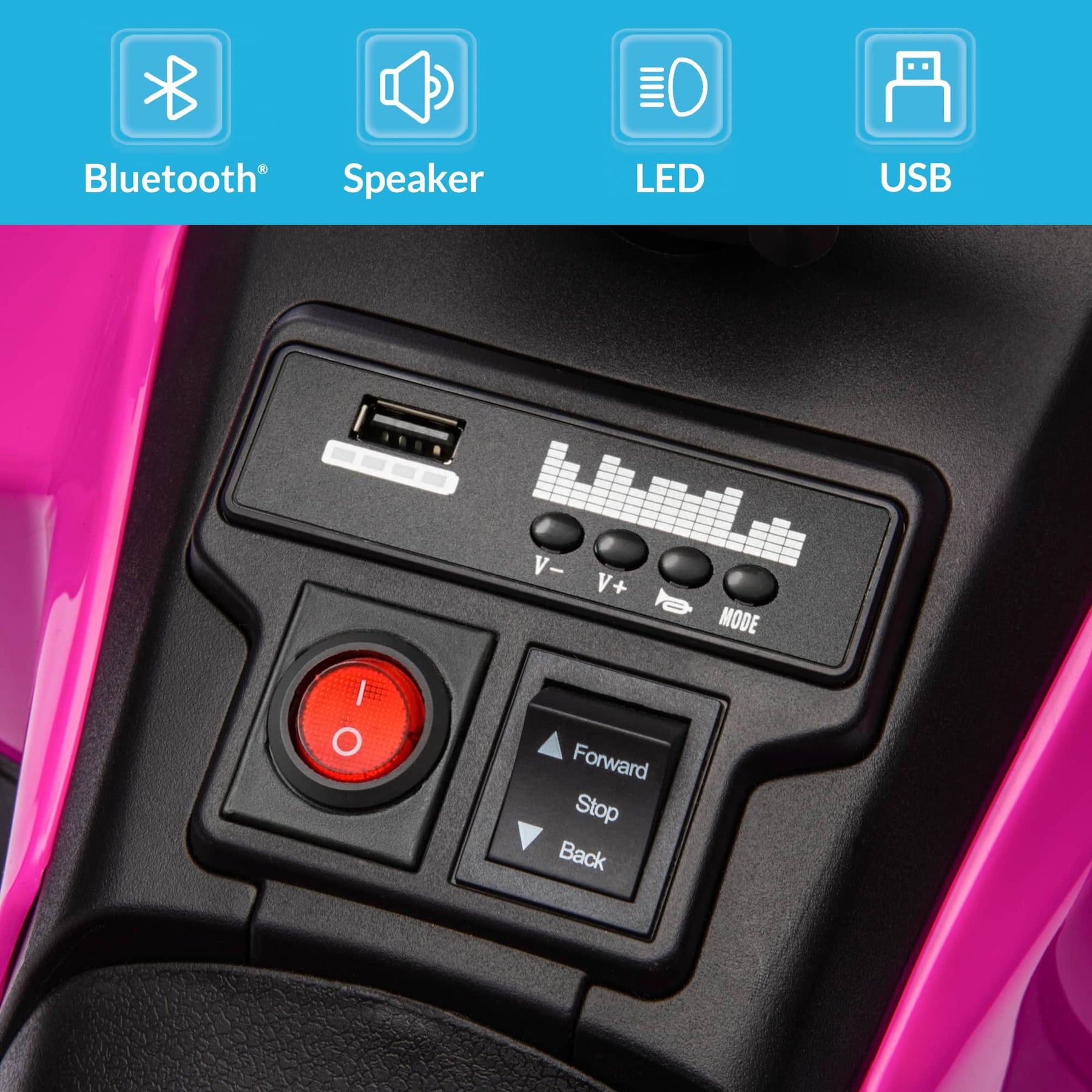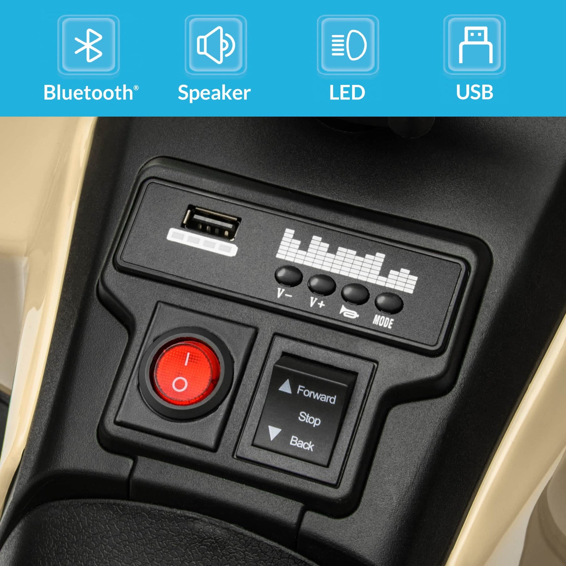 • Bluetooth & USB Audio Play - Equipped with Bluetooth and USB ports, this ATV lets kids enjoy music directly from your phone or devices. Comes with a fun horn sound for an even more entertaining ride.